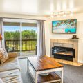 This cozy living area features a large and comfy couch and recliner, a coffee table, flat screen TV and a gas fireplace to set the mood. Relax and take in the view of the Pacific Ocean, the dunes, and the seabirds overhead as your stress of daily life melts away. In good weather, you can adjourn to the private deck and smell the fragrant sea air roll in with the warm breeze.