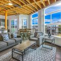 This is a fresh and bright new condo in a brand new building, and this unit stands out because it features a unified living area. The open concept space is instantly inviting as it connects everything together: the cozy living room equipped with a plush couch and chair, along with a large flat-screen television, flows to a beautiful wooden table set, that brings warmth to the area and is the perfect dining spot, which drifts to the modern kitchen with a large island breakfast bar and a full suite of appliances, including a shiny new refrigerator/freezer, stove, microwave, and dishwasher, nestled between sleek and cool shelving.