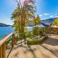 The kitchen is equipped well enough to cook your feast and bake dessert and includes a full complement of appliances, pots, pans and dinnerware. A large outdoor seating area on the deck is a great spot for chit-chat while admiring the lake below.