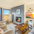 An inviting living area features a couch, coffee table and two extremely comfortable recliners, all centered around a new 43" SMART TV with a BluRay DVD player and an eco-friendly fireplace. From here, you can take in a cinematic view of the Pacific Ocean, the dunes, and the seabirds that flit above them. In good weather, you can adjourn to the private deck to smell the fragrant sea air. Dogs are welcome with our standard per dog, per night fee.