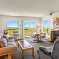 The charming living area features a couch, coffee table and two reclining chairs, all with great views of the ocean through the windows and sliding glass doors. From here, you can take in the tremendous view of the Pacific Ocean, the dunes, and the seabirds that flit about them. A a TV with DVD player lets you queue up your favorite movie to wind down the day.